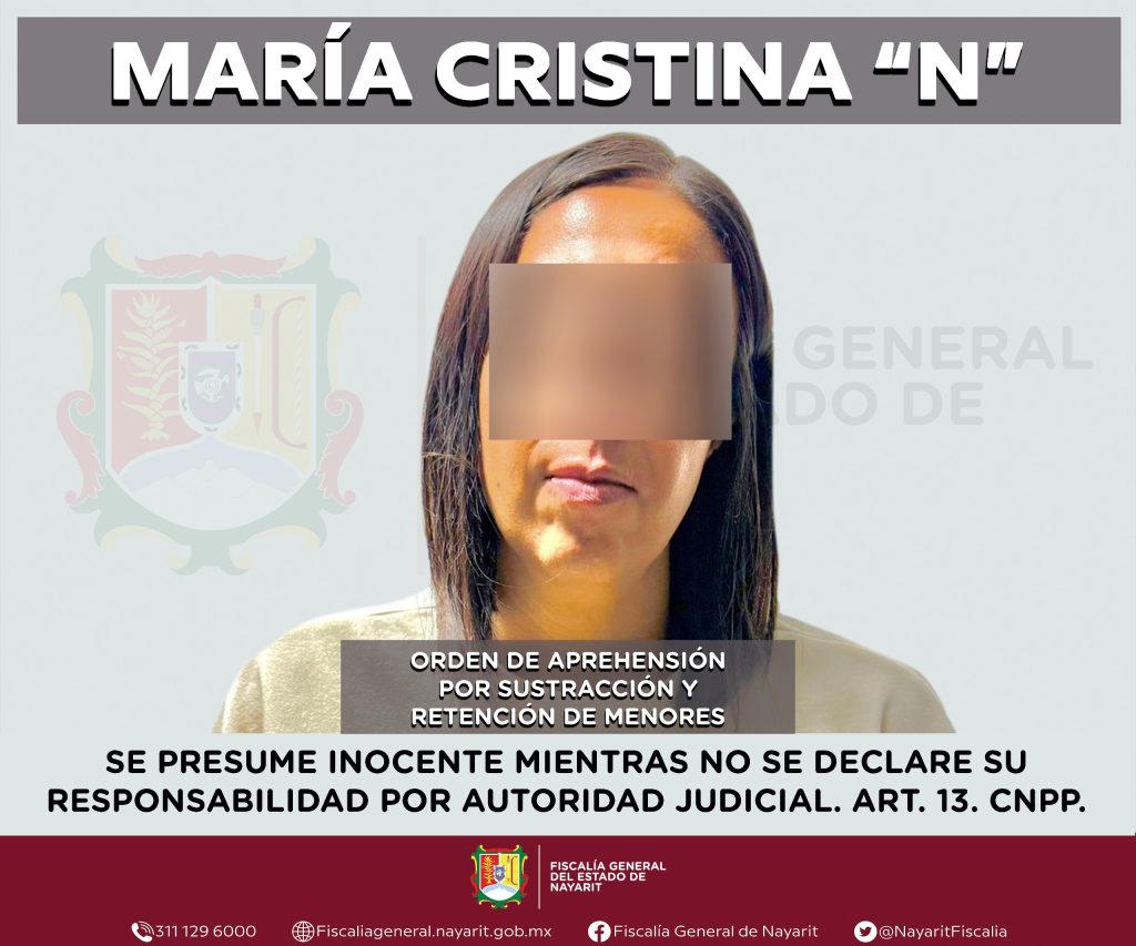 En colaboración con la Fiscalía General de Justicia del Estado de México, elementos de la Agencia de Investigación Criminal de Nayarit ejecutaron una orden de aprehensión en el municipio de Nezahualcóyotl, Estado de México contra María Cristina “N”, por su probable participación en hechos que la legislación vigente tipifica como delitos de sustracción y retención de menores, cometido en agravio de una niña cuya identidad se reserva por respeto a su derecho a la privacidad e integridad.