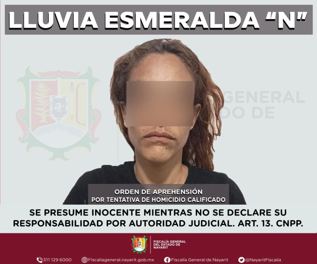 En colaboración con la Fiscalía General del estado de Chihuahua, la Agencia de Investigación Criminal de Nayarit ejecutó una orden de aprehensión en la ciudad de Tepic contra Lluvia Esmeralda “N”, por su probable participación en hechos que para la ley configuran el delito de homicidio calificado en grado de tentativa, cometido en el estado de Chihuahua.
