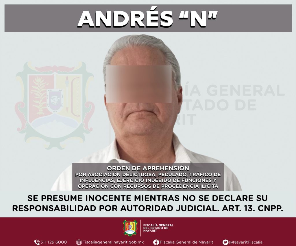 En colaboración con la Fiscalía General del estado de Jalisco, elementos de la Agencia de Investigación Criminal de Nayarit ejecutaron una orden de aprehensión en la ciudad de Guadalajara, Jalisco contra Andrés “N”, por su probable participación en hechos que la legislación vigente tipifica como delitos de asociación delictuosa, peculado, tráfico de influencias, ejercicio indebido de funciones y operación con recursos de procedencia ilícita, cometidos contra la Secretaría de Administración y Finanzas del Gobierno del estado de Nayarit.