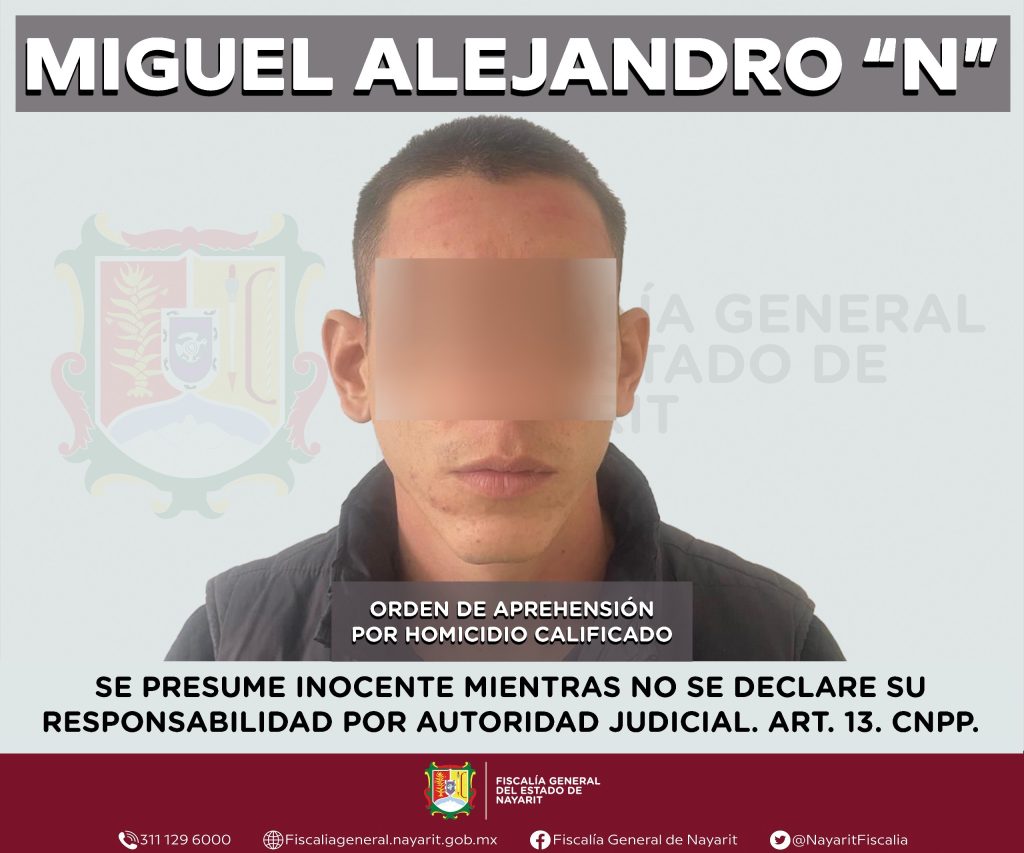 En colaboración con la Fiscalía General del estado de Jalisco, elementos de la Agencia de Investigación Criminal de Nayarit ejecutaron una orden de aprehensión en el municipio de Bahía de Banderas contra Miguel Alejandro “N”, por su probable participación en hechos que la legislación vigente tipifica como delito de homicidio calificado, cometido en el estado de Jalisco, en agravio de una persona de sexo masculino cuya identidad se reserva.