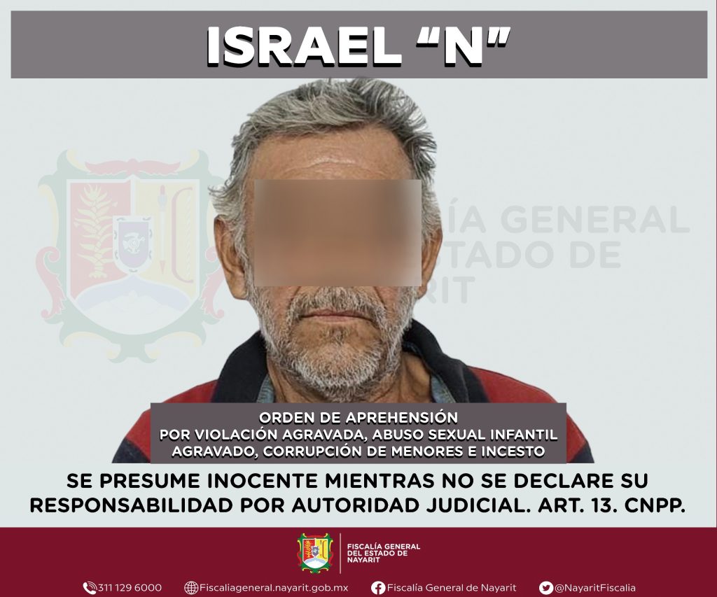 En colaboración con la Fiscalía General del estado de Jalisco, la Agencia de Investigación Criminal de Nayarit ejecutó una orden de aprehensión en la localidad La Peñita de Jaltemba, municipio de Compostela contra Israel “N”, por su presunta participación en hechos que la ley tipifica como delitos de violación agravada, abuso sexual infantil agravado, corrupción de menores e incesto, cometidos contra tres menores de edad de quienes se reservan las identidades para salvaguardar su privacidad e integridad.