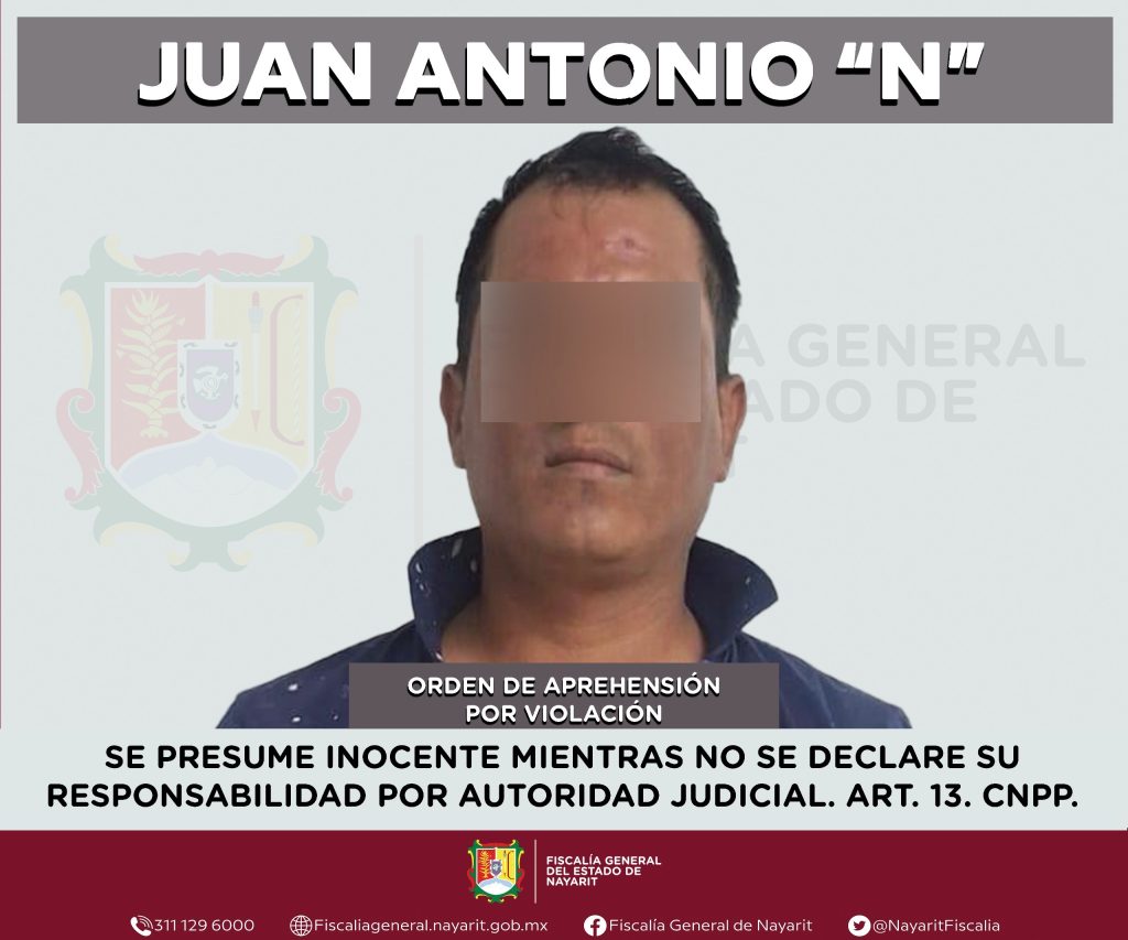 Elementos de la Agencia de Investigación Criminal de Nayarit ejecutaron una orden de aprehensión en la capital nayarita contra Juan Antonio “N”, por su probable participación en hechos que para la ley configuran el delito de violación, cometido contra una persona de sexo femenino de la cual se reserva la identidad para salvaguardar su privacidad e integridad.