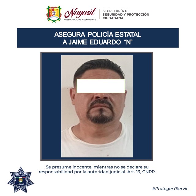 El operativo se realizó en la localidad de Francisco I. Madero, municipio de Tepic, donde fue detenido Jaime Eduardo “N” “N”, de 49 años, señalado por su probable responsabilidad en agravio de una persona del sexo femenino cuya identidad se mantiene bajo reserva.