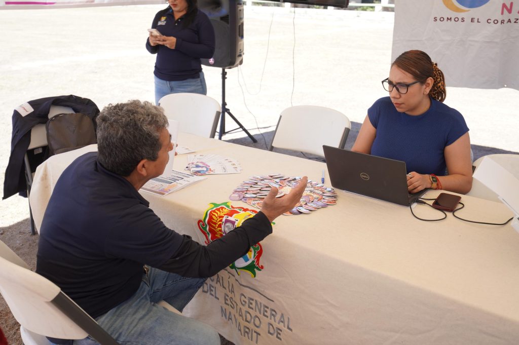 La Fiscalía General del Estado de Nayarit participó en la jornada interinstitucional Latiendo en Tu Colonia, desarrollada en la Unidad Deportiva de la colonia Puerta de la Laguna, en Tepic, con el objetivo de acercar servicios de procuración de justicia y atención ciudadana a las familias del lugar.