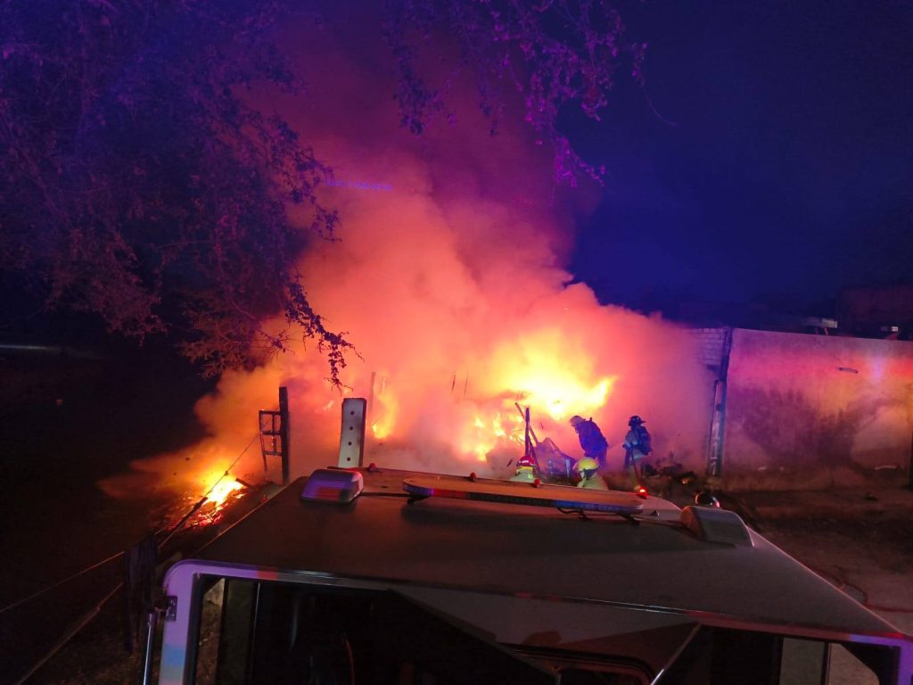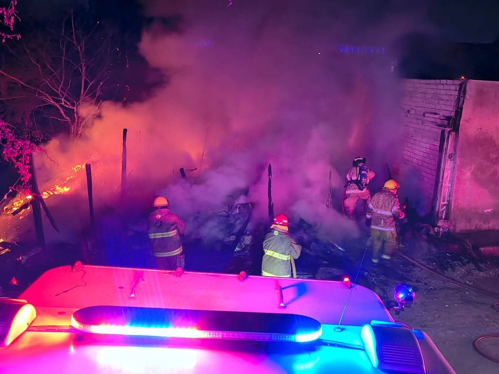 Elementos del cuerpo de Bomberos acudieron la noche de ayer a un reporte de incendio en una casa habitación ubicada sobre la avenida Colosio, en la colonia América Manríquez. Al arribar al lugar, los elementos confirmaron que se trataba de una vivienda hechiza, construida con materiales de cartón y plástico, la cual fue consumida en su totalidad por el fuego.