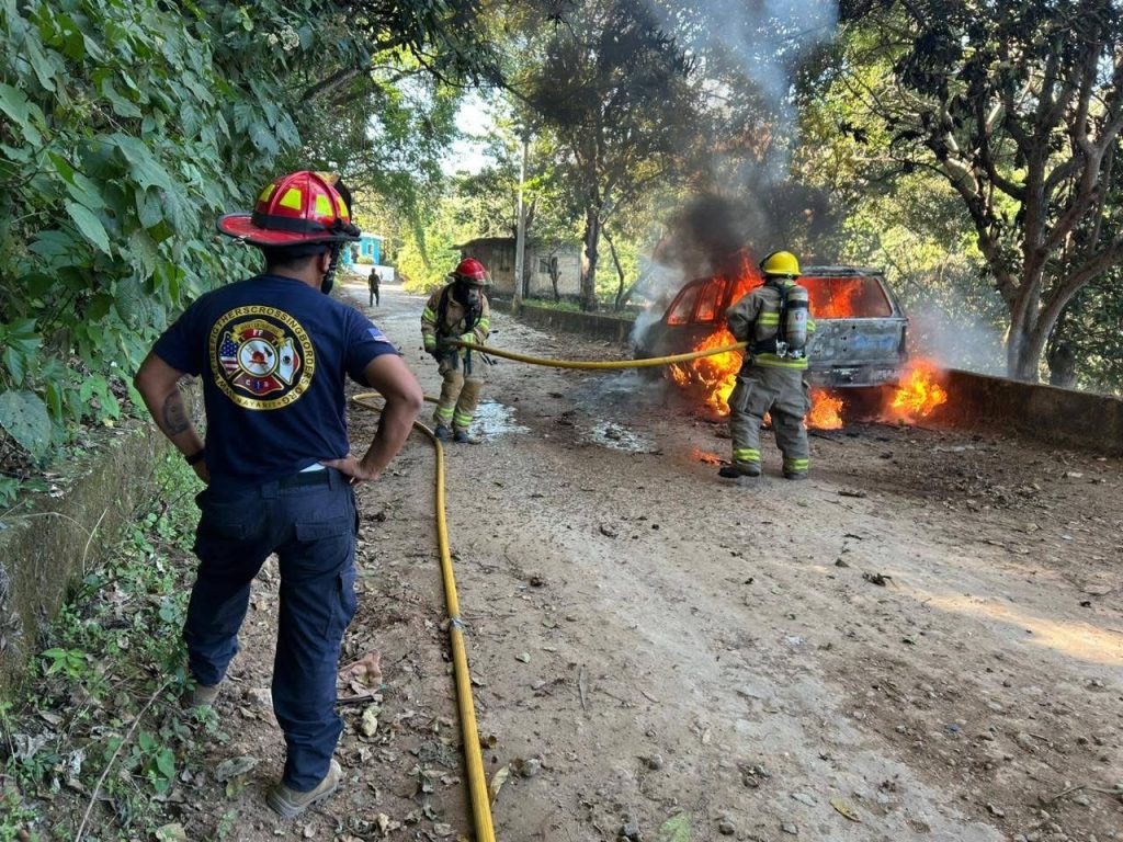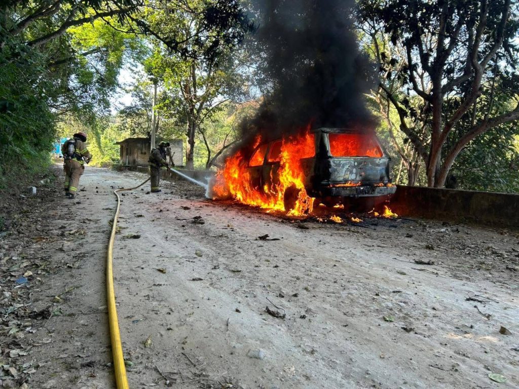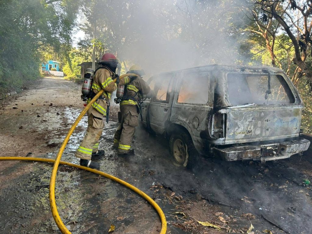 Elementos de Protección Civil y Bomberos de Tepic atendieron reporte de incendio en vehículo en las instalaciones del poblado El Pichón.