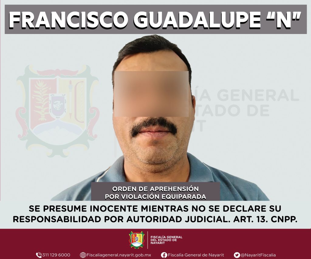 La Fiscalía General de Nayarit a través de la Agencia de Investigación Criminal ejecutó una orden de aprehensión en el municipio de Ixtlán del Río contra Francisco Guadalupe “N”, por su presumible participación en hechos que para la ley configuran el delito de violación equiparada, cometido en agravio de una niña de quien se reserva la identidad para salvaguardar su privacidad.