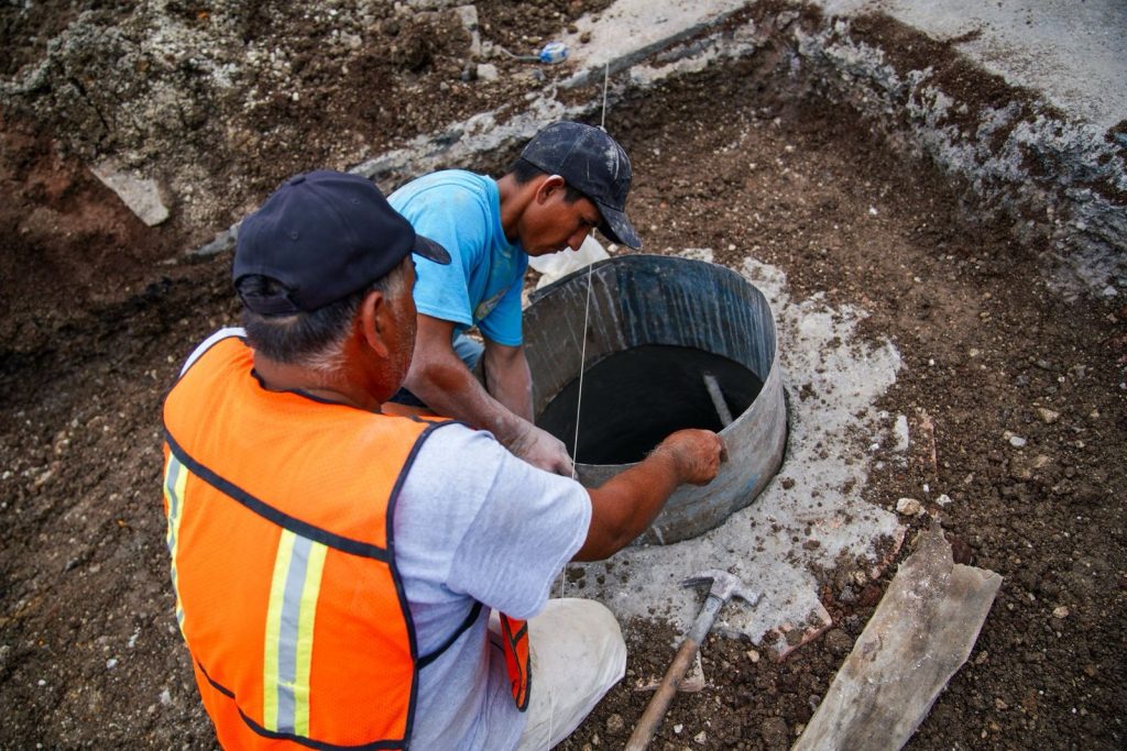 La obra contempla la instalación de 110 metros de atarjeas de PVC de 10 pulgadas, 206 metros de descargas sanitarias de 6 pulgadas, 15 registros domiciliarios y 2 pozos de visita.
