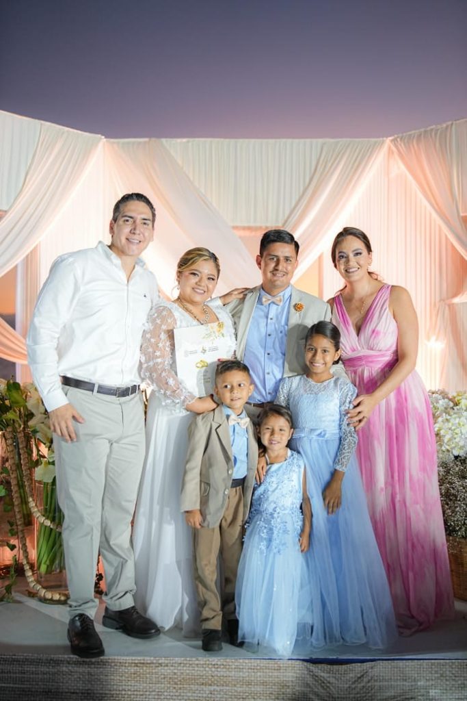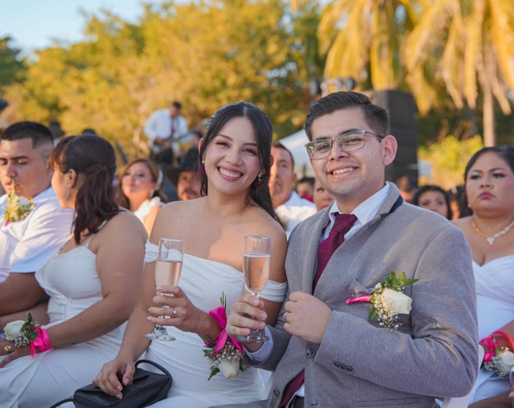 Durante el brindis, la presidenta del Sistema DIF Municipal, Margui Zúñiga, dirigió un mensaje a los recién casados, resaltando la importancia de fortalecer la relación de pareja. “Hoy comienzan una nueva etapa. La comunicación entre ustedes es fundamental. Dense tiempo como pareja, aun cuando tengan familia. Que cada momento sea mágico y que siempre practiquen el diálogo”, expresó.