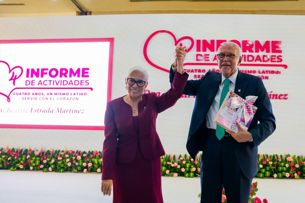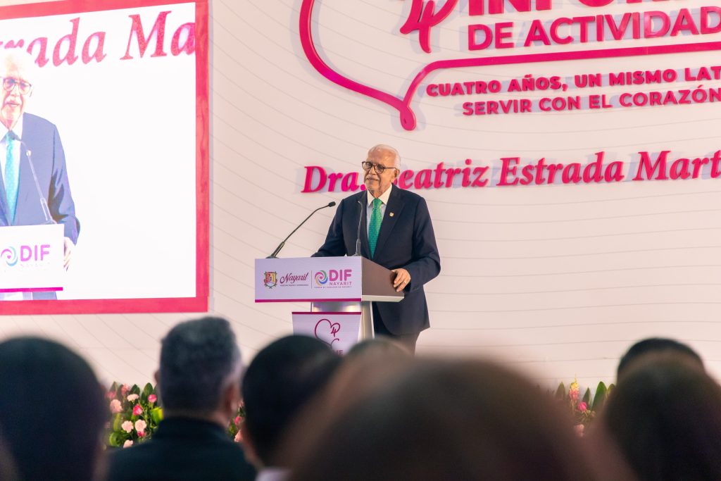 Con resultados tangibles y un mensaje de esperanza y agradecimiento, la presidenta del Sistema DIF Nayarit, doctora Beatriz Estrada Martínez, presentó su Cuarto Informe de Actividades, acompañada por su esposo, el gobernador del estado, Miguel Ángel Navarro Quintero; su familia; autoridades de los tres órdenes de gobierno; representantes sociales y medios de comunicación. En este encuentro, reafirmó su convicción de continuar sirviendo con el corazón y de seguir transformando la vida de miles de familias nayaritas con acciones concretas y de profundo sentido humano.
