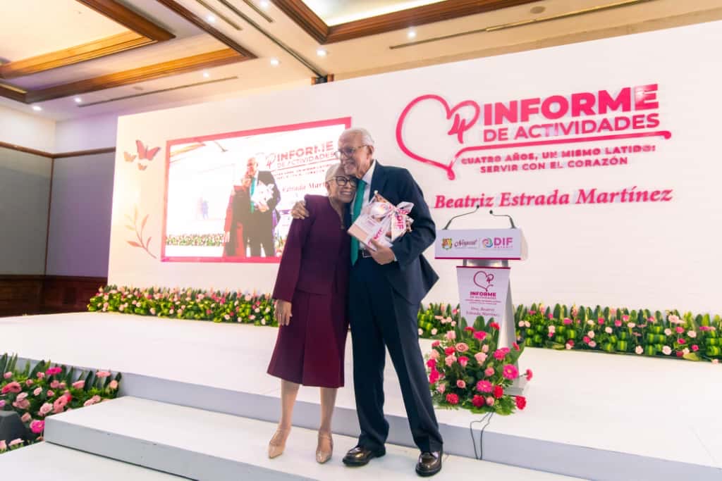 “El agradecido soy yo, porque como esposo me hace sentir muy orgulloso y como gobernador respaldado y fuerte para seguir adelante. Beatriz, seguirás contando con el apoyo de siempre. Tú lo sabes que hacemos hasta lo imposible por apoyar los programas sociales y lo vamos a seguir haciendo. No podemos negarnos a apoyarte, no podemos negarnos a apoyar a tu gente, no puedo como esposo, negarme a apoyarte. Y por el contrario, necesito llevarte de la mano para seguir luchando. Así nos conocimos y así habríamos de terminar el camino. Muchas gracias y buenas tardes”, señaló el gobernador.