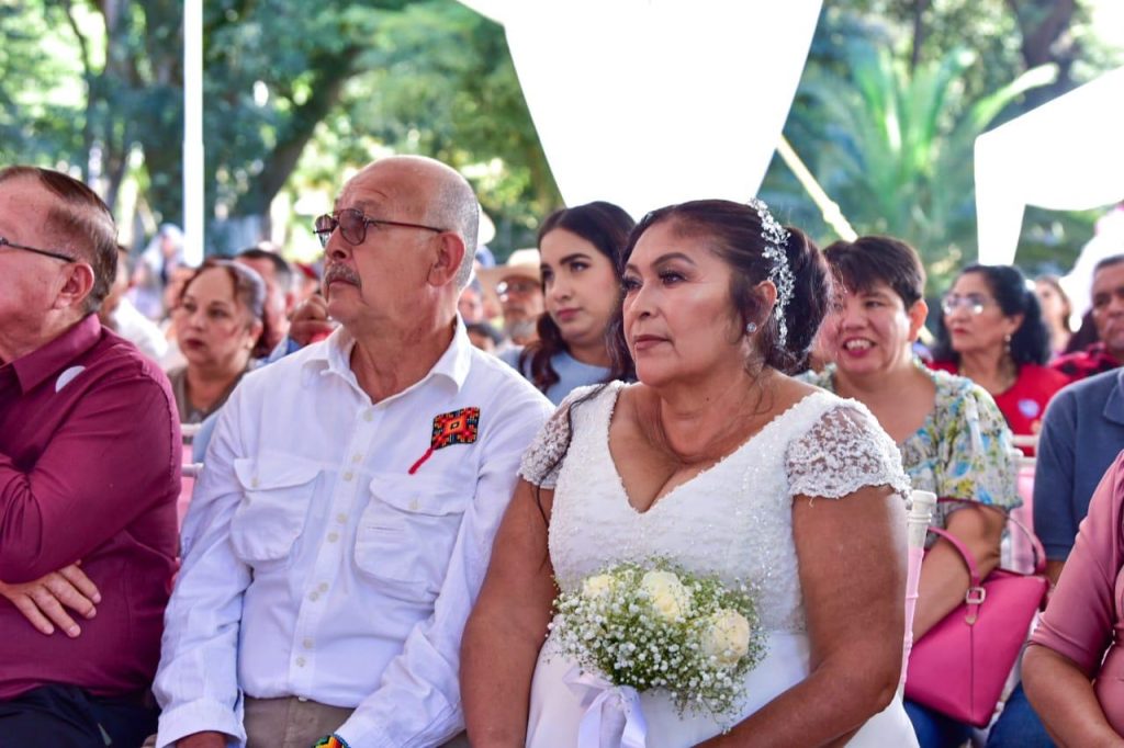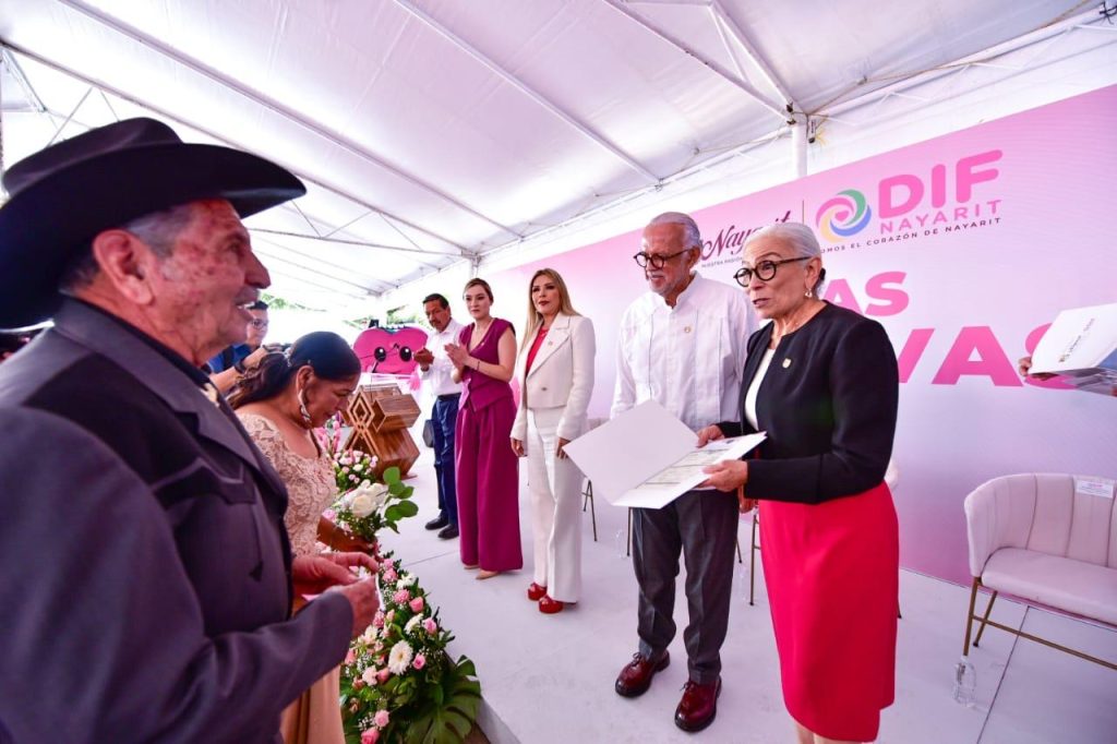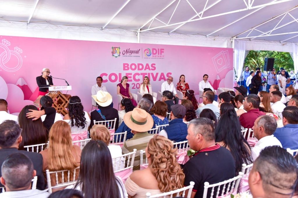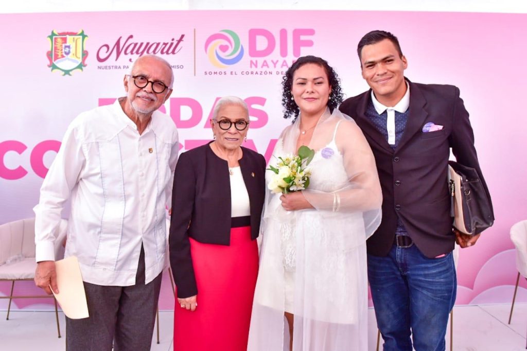 Durante la ceremonia, la titular de la asistencia social en Nayarit destacó que el compromiso, el respeto y el amor son la base para construir matrimonios sólidos y familias estables, acompañando a las y los contrayentes en este momento significativo de sus vidas.