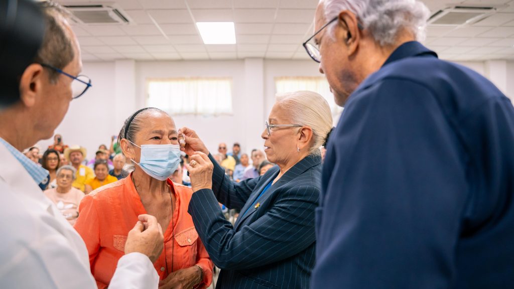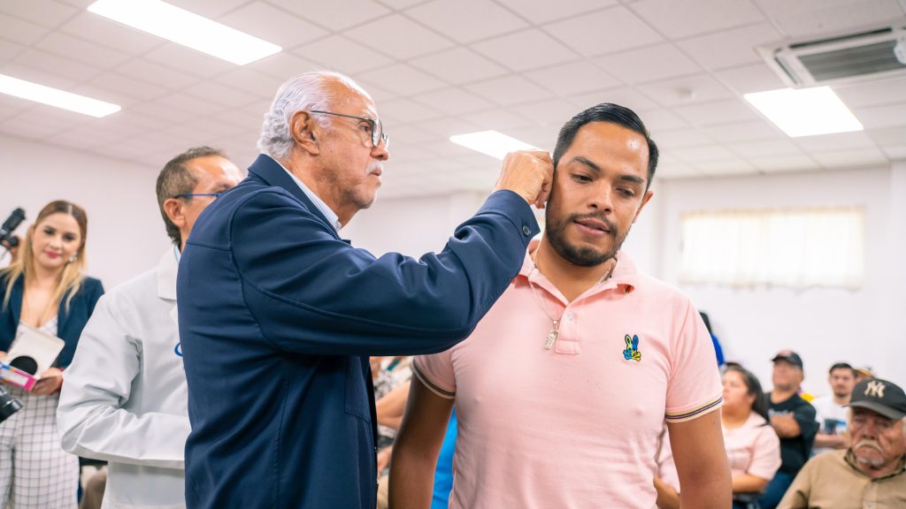 “No solamente les estamos entregando el aparato, sino que también les estamos brindando la oportunidad de poder mejorar su comunicación, de poder mejorar la relación familiar y social. Y yo creo que ahorita ya algunos de ustedes lo escucharon: ya mejoraron su comunicación, ya van a poder interactuar con la familia y con todos los que les rodean, van a poder escuchar los sonidos de la naturaleza y también la música de la vida. Realmente estamos transformando su vida, y se las estamos transformando con todo el corazón, con todo el deseo de que ustedes encuentren ese bienestar que se merecen», señaló la doctora Beatriz Estrada Martínez.