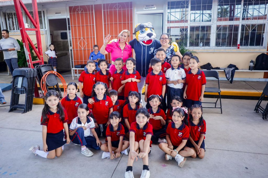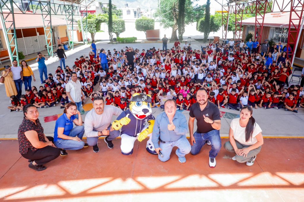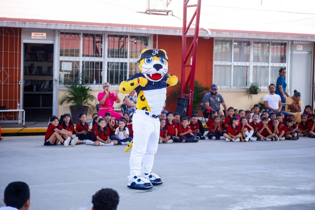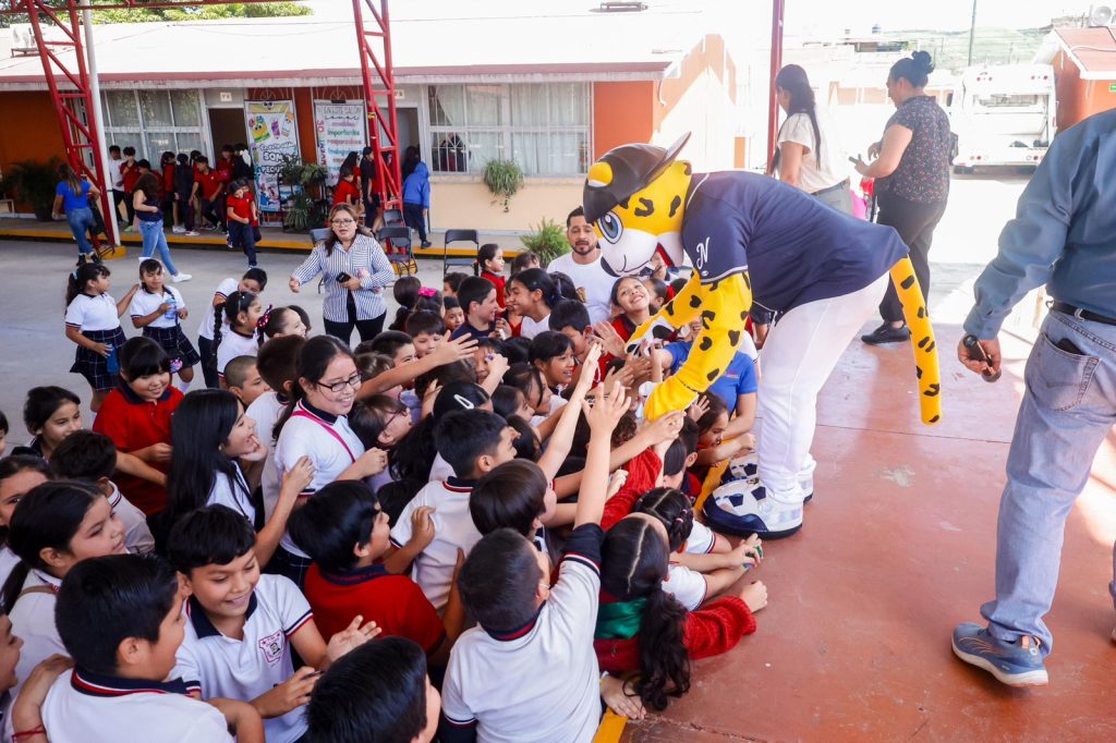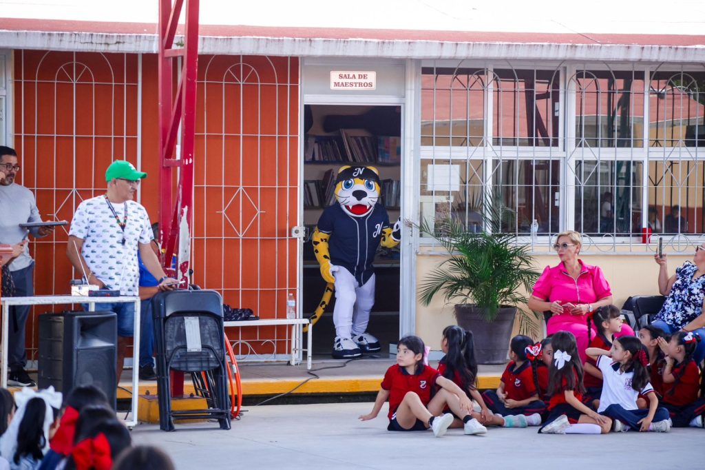 Chacho Jaguar y Jaguares de Nayarit llegan a la primaria Ricardo Flores Magón, en la colonia 2 de Agosto