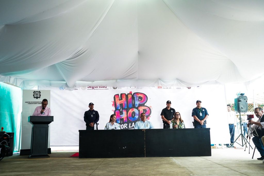 Con el firme compromiso de fortalecer los procesos de reinserción social a través del arte, la cultura y la participación comunitaria, la Secretaría de Seguridad y Protección Ciudadana, a través de la Dirección General de Prevención y Reinserción Social, llevó a cabo en el Centro de Reinserción Social “Venustiano Carranza” la rueda de prensa del programa “Hip Hop por la Paz”. Esta iniciativa promueve la construcción de paz y la libre expresión desde una perspectiva humana y social.