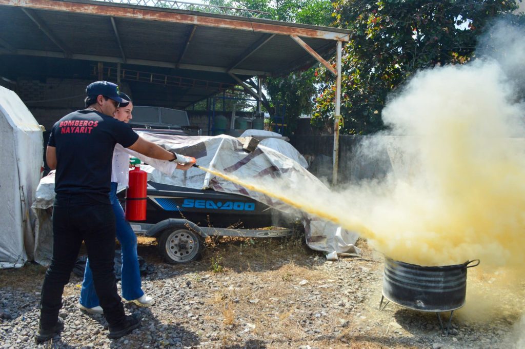 Impartiendo a estos trabajadores, el actuar que realiza la brigada de «Uso de extintores y manejo de fuego», enseñándoles sobre los elementos del fuego, sus diferentes etapas de ebullición, sofocación e ignición, así como los agentes extintores correspondientes a cada tipo de siniestro.