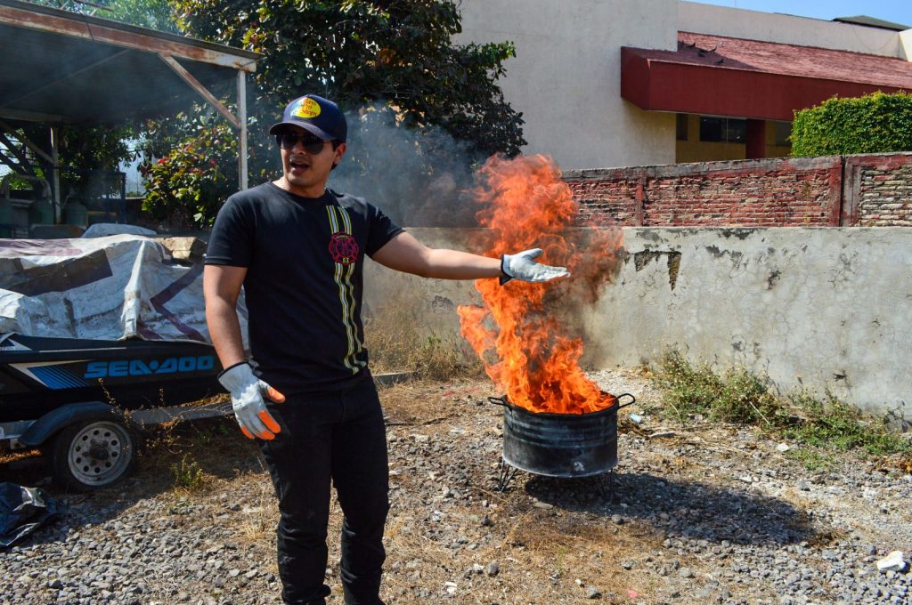 De igual manera, se habló sobre las clases de los extintores y en que tipo de medida y peso deben de ser utilizados. Los instructores expusieron de forma didáctica el cómo reacciona el fuego en ambientes abiertos y cerrados, para posteriormente realizar una actividad en la que sofocaron un conato mediante el uso de un agente extintor de Polvo Químico Seco.
