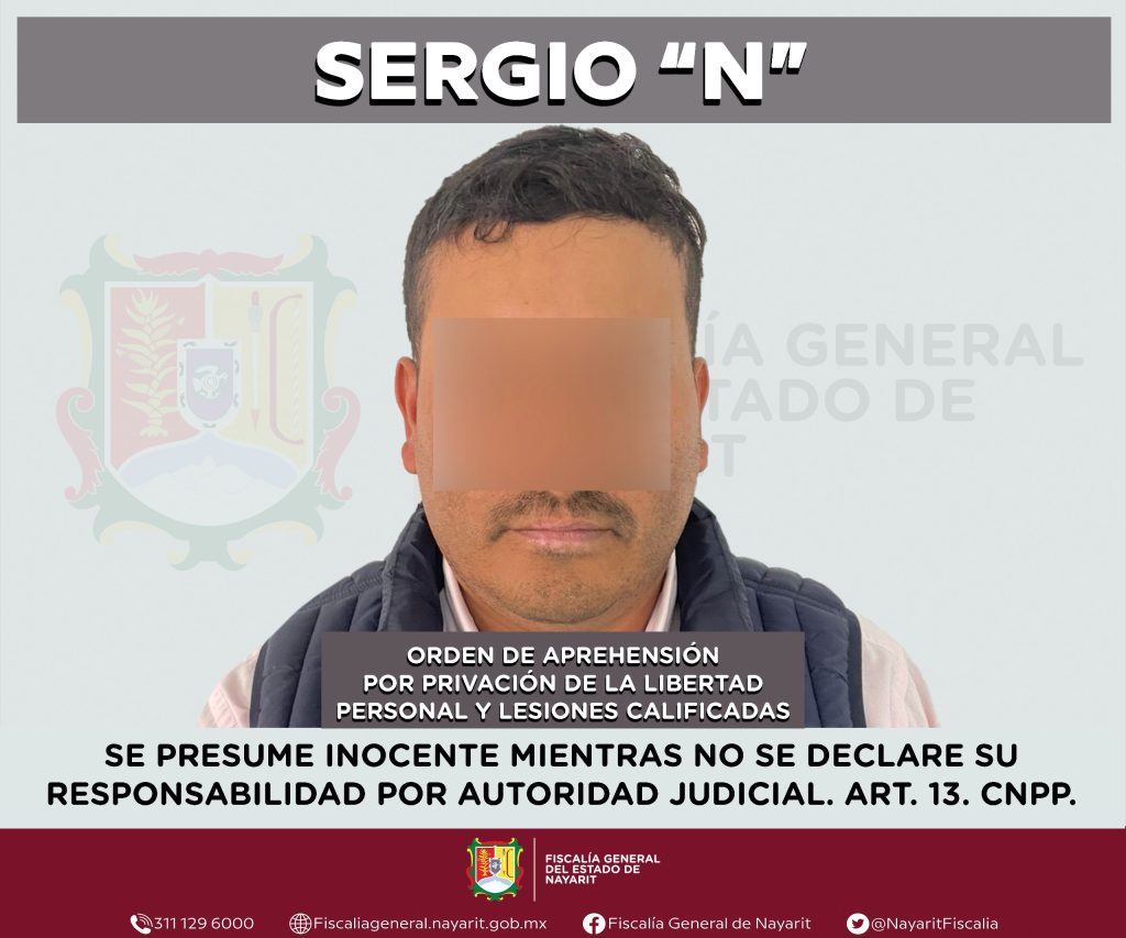 Elementos de la Agencia de Investigación Criminal de Nayarit ejecutaron una orden de aprehensión en la localidad El Limón, municipio de Santa María del Oro contra Sergio “N”, por su presumible participación en hechos que la ley señala como delitos de privación de la libertad personal y lesiones calificadas, cometidos en agravio de una persona de sexo masculino cuya identidad es reservada para salvaguardar su privacidad e integridad.