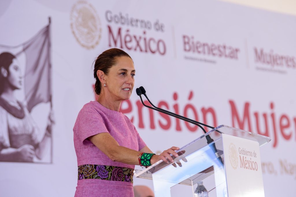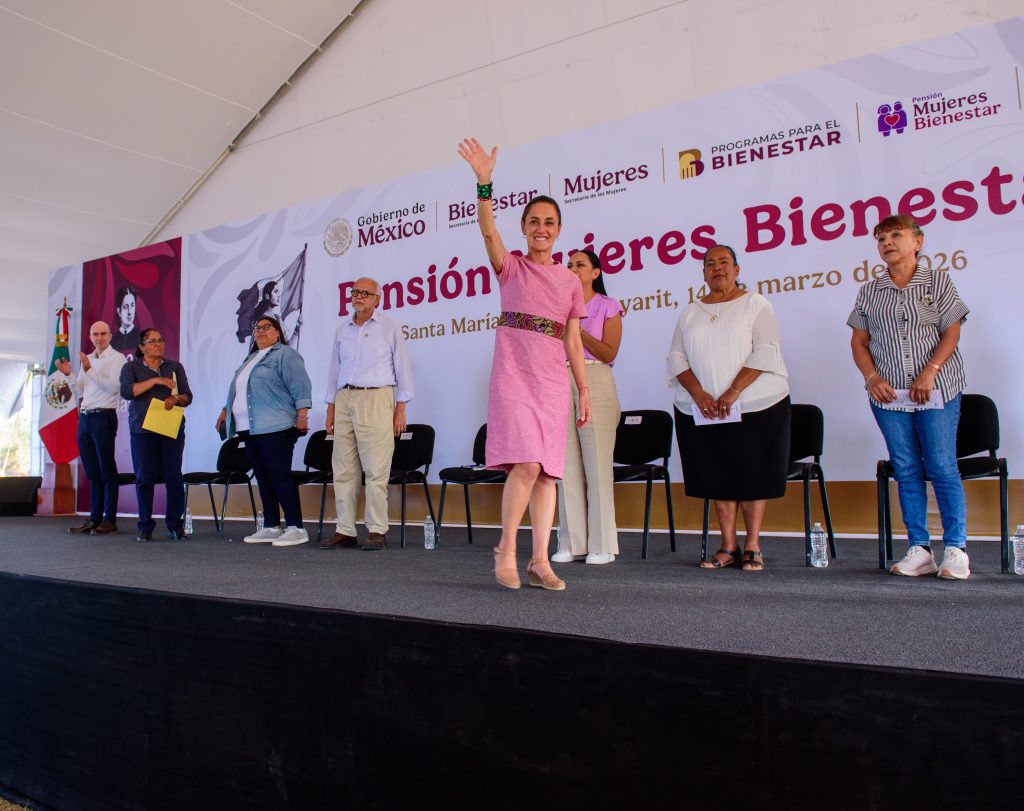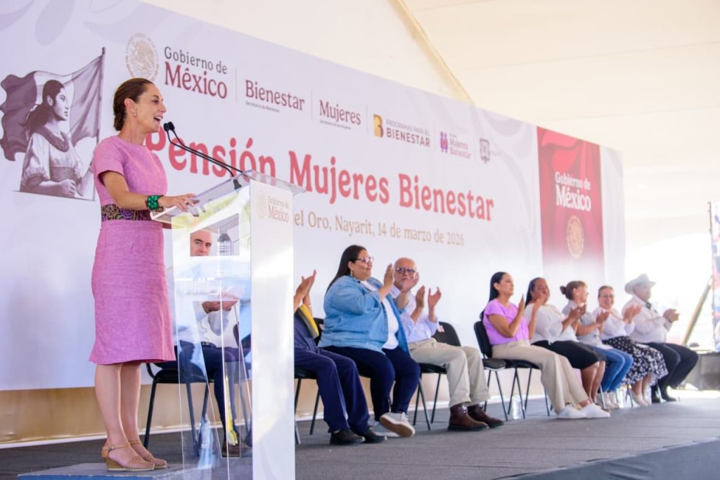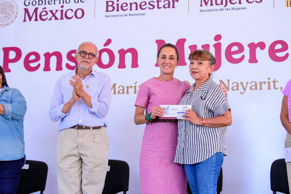 En el municipio de Santa María del Oro, la presidenta de México, Claudia Sheinbaum Pardo, encabezó la entrega de tarjetas de la Pensión Mujeres Bienestar durante su gira de trabajo por Nayarit, acompañada por el gobernador del estado, Miguel Ángel Navarro Quintero.