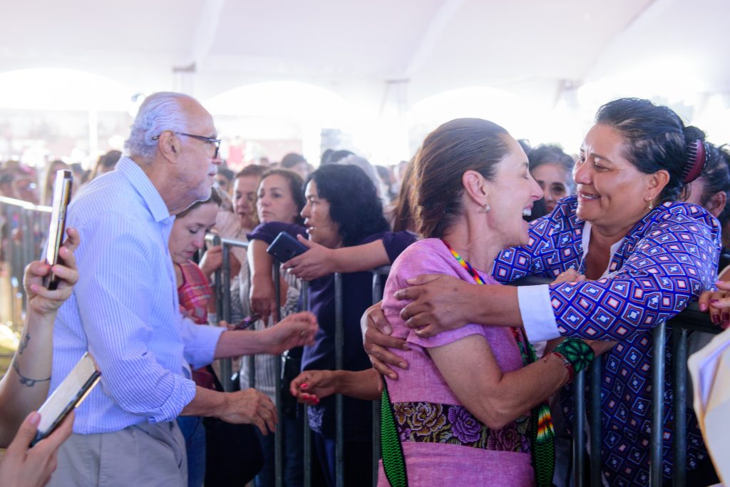 Claudia Sheinbaum y Miguel Ángel Navarro entregan en Santa María del Oro tarjetas de la Pensión Mujeres Bienestar