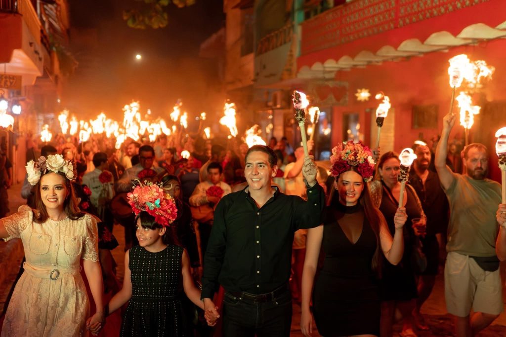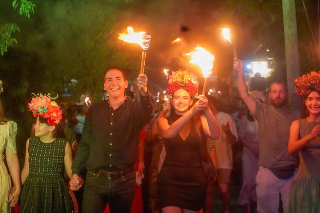 El recorrido fue iluminado por antorchas, que se convirtió en un espectáculo de color y música que durante la caminata fue agradable escuchar melodías como «Amor eterno» y «Cucurrucú Paloma».