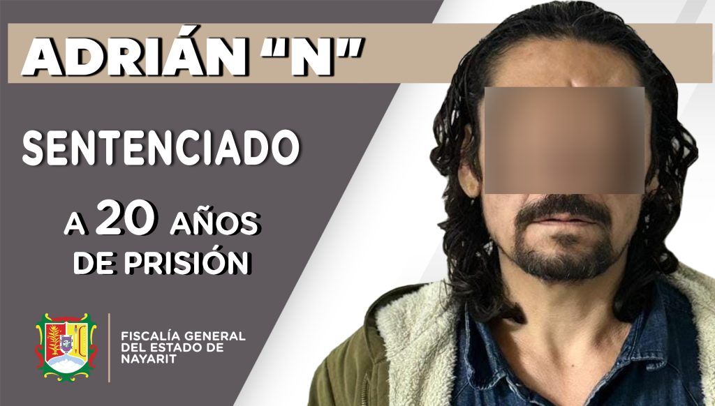 La Fiscalía General del estado de Nayarit informa que un Tribunal de Enjuiciamiento dictó una sentencia de 20 años de prisión contra Adrián “N”, por su responsabilidad en el delito de homicidio calificado.