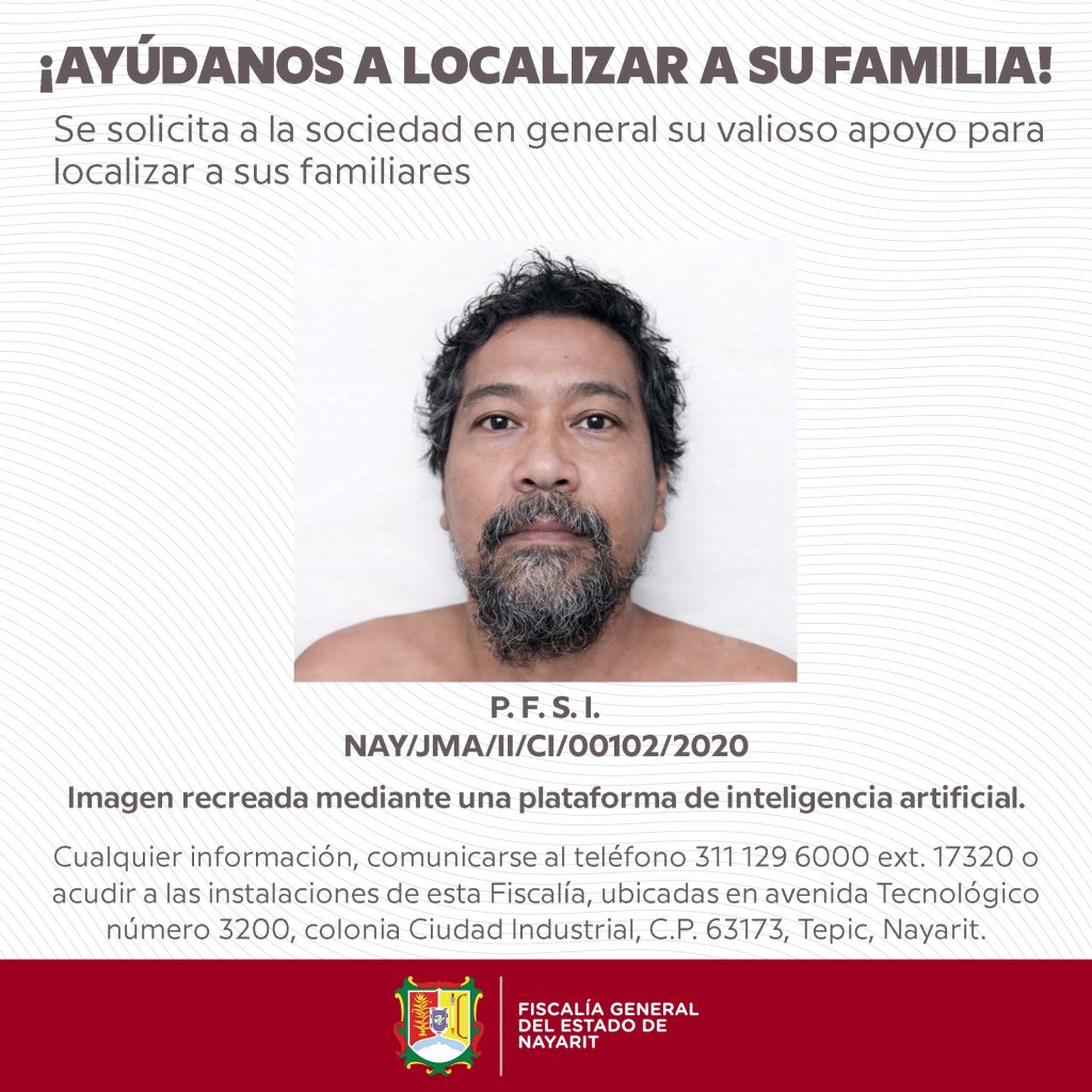Las imágenes difundidas fueron recreadas con apoyo de una plataforma de inteligencia artificial, ya que no se cuenta con datos biométricos ni registros oficiales del INE que permitan su identificación.