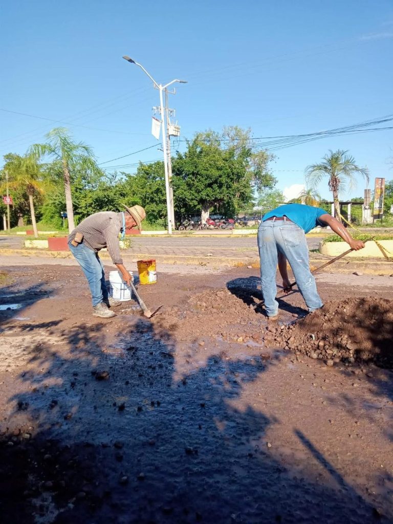 El H. XXX Ayuntamiento de Ruiz, encabezado por el presidente municipal Adolfo Betancourt Salas, continúa con las labores de mantenimiento y bacheo en el Bulevar Juárez, una de las principales vialidades de la cabecera municipal.