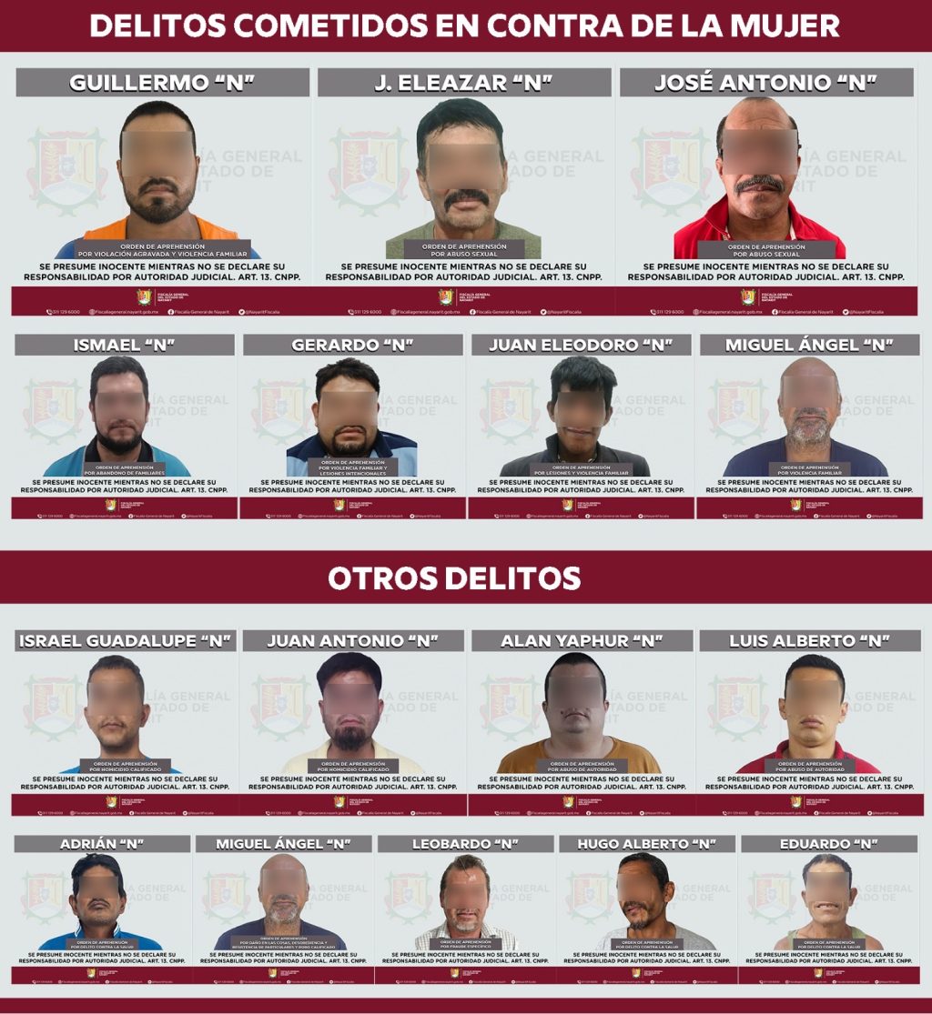 Tepic, Nayarit; viernes 6 de febrero de 2026. – En el desarrollo de sus funciones legales y como parte de la estrategia permanente de procuración de justicia, la Fiscalía General del Estado de Nayarit ejecutó el 5 de febrero un total de 16 órdenes de aprehensión por diversos delitos, en distintos municipios del estado.