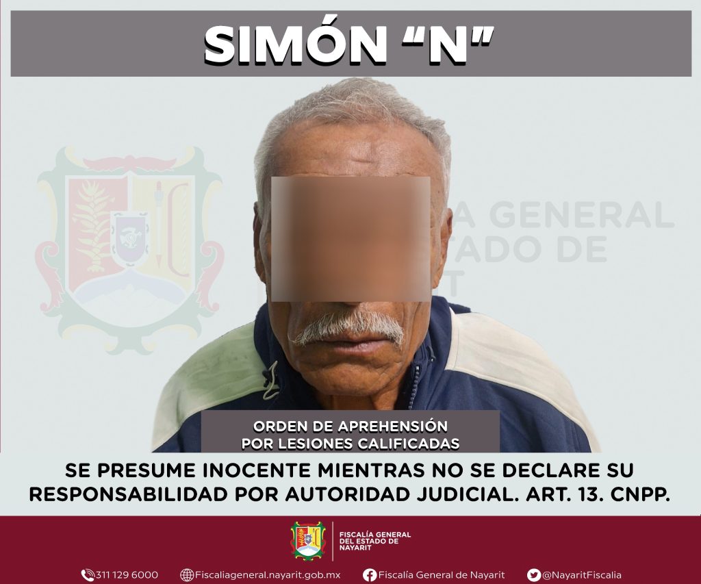 La Fiscalía General de Nayarit a través de la Agencia de Investigación Criminal ejecutó una orden de aprehensión en la localidad Sayulita, municipio de Bahía de Banderas contra Simón “N”, por su presumible participación en hechos que para la ley configuran el delito de lesiones calificadas, ilícito cometido contra una persona de sexo masculino de quien se reserva la identidad para salvaguardar su privacidad e integridad.