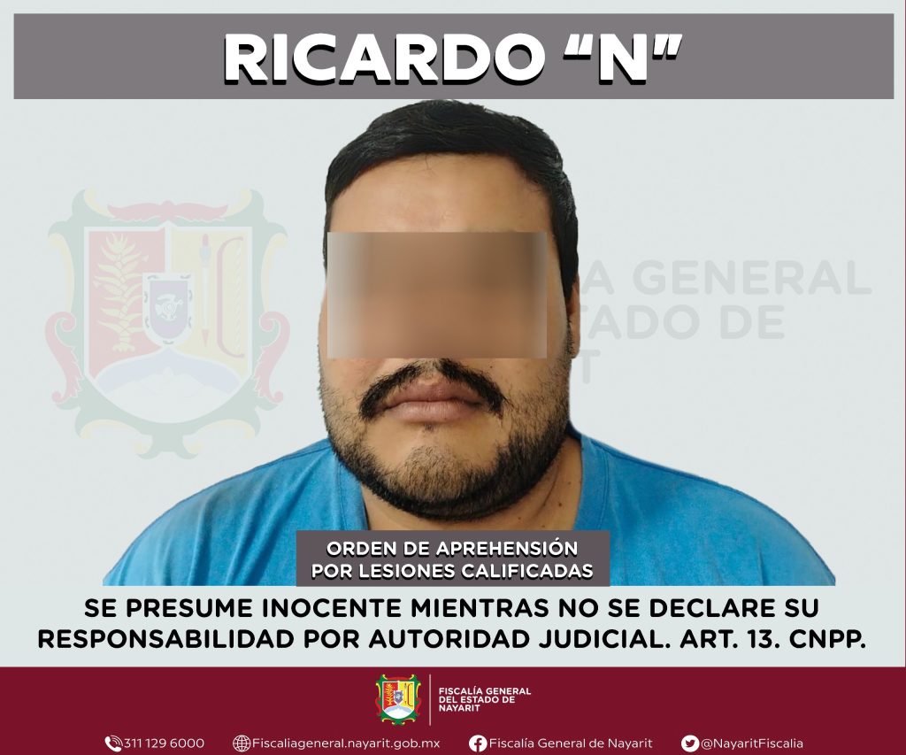Elementos de la Agencia de Investigación Criminal de Nayarit ejecutaron una orden de aprehensión en la localidad San Vicente, municipio de Bahía de Banderas contra Ricardo “N”, por su presunta participación en hechos que la ley tipifica como delito de lesiones calificadas, cometido en agravio de una persona de sexo femenino de quien se reserva la identidad para salvaguardar su privacidad.