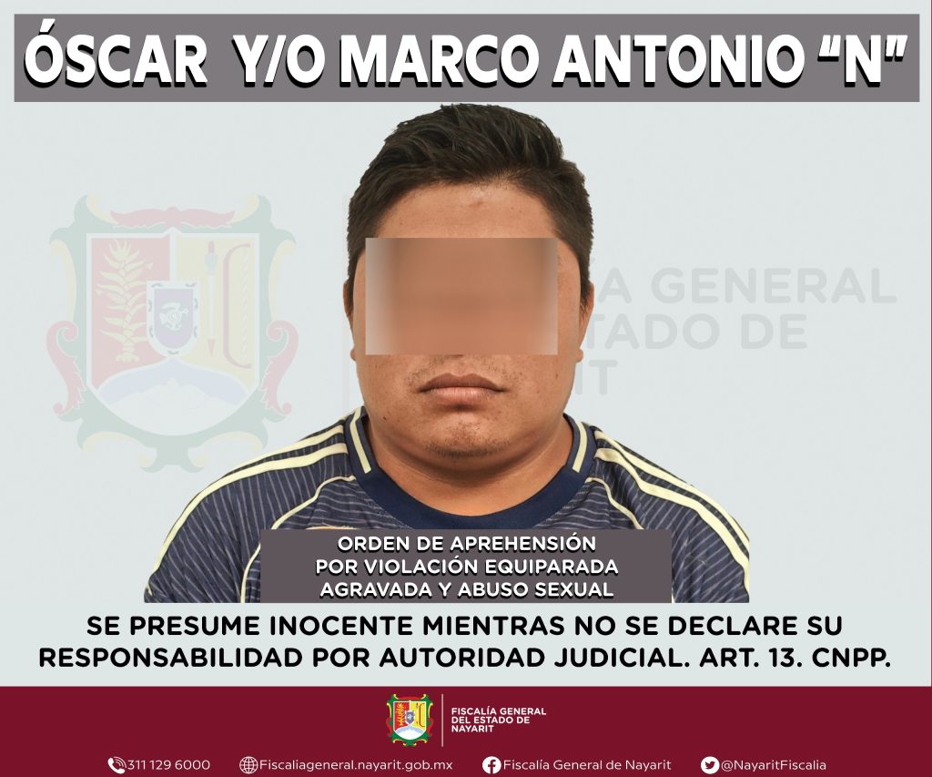 Elementos de la Agencia de Investigación Criminal de Nayarit ejecutaron una orden de aprehensión en el municipio de Bahía de Banderas contra Óscar “N” o Marco Antonio “N”, por su presunta participación en hechos que la ley tipifica como delitos de violación equiparada agravada y abuso sexual, cometidos en agravio de una menor de edad de quien se reserva la identidad para salvaguardar su privacidad e integridad.