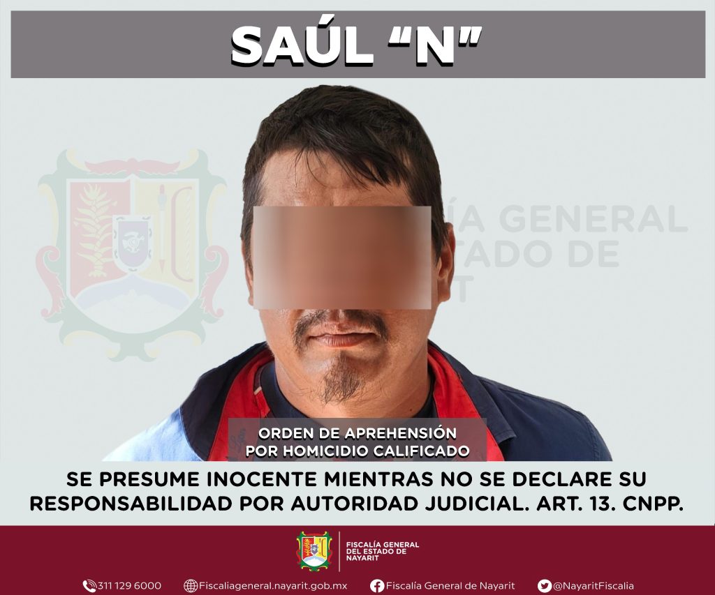 En colaboración con la Fiscalía General del estado de Jalisco, elementos de la Agencia de Investigación Criminal de Nayarit ejecutaron una orden de aprehensión en el municipio de Ixtlán del Río contra Saúl “N”, por su probable participación en hechos que la legislación vigente tipifica como delito de homicidio calificado, cometido en el estado de Jalisco en agravio de una persona de sexo masculino. Respetando el derecho a la privacidad e integridad de la víctima se reserva su identidad.