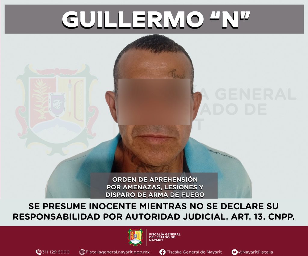 Elementos de la Agencia de Investigación Criminal de Nayarit ejecutaron una orden de aprehensión en el municipio de San Pedro Lagunillas contra Guillermo “N”, por su probable participación en hechos que para la ley configuran los delitos de amenazas, lesiones y disparo de arma de fuego.