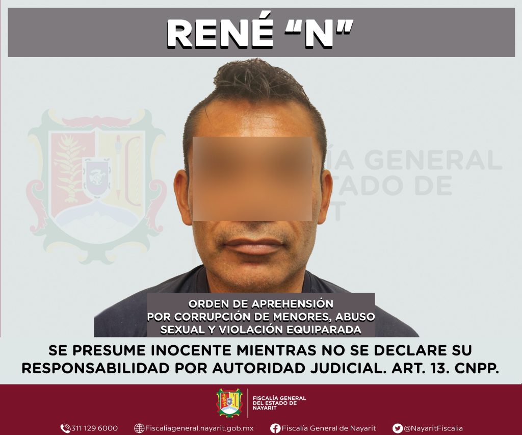 La Fiscalía General de Nayarit a través de la Agencia de Investigación Criminal ejecutó una orden de aprehensión en la localidad Mezcales, municipio de Bahía de Banderas contra René “N”, por su presumible participación en hechos que para la ley configuran los delitos de corrupción de menores, abuso sexual y violación equiparada, ilícitos cometidos contra una adolescente de quien se reserva la identidad para salvaguardar su privacidad e integridad.