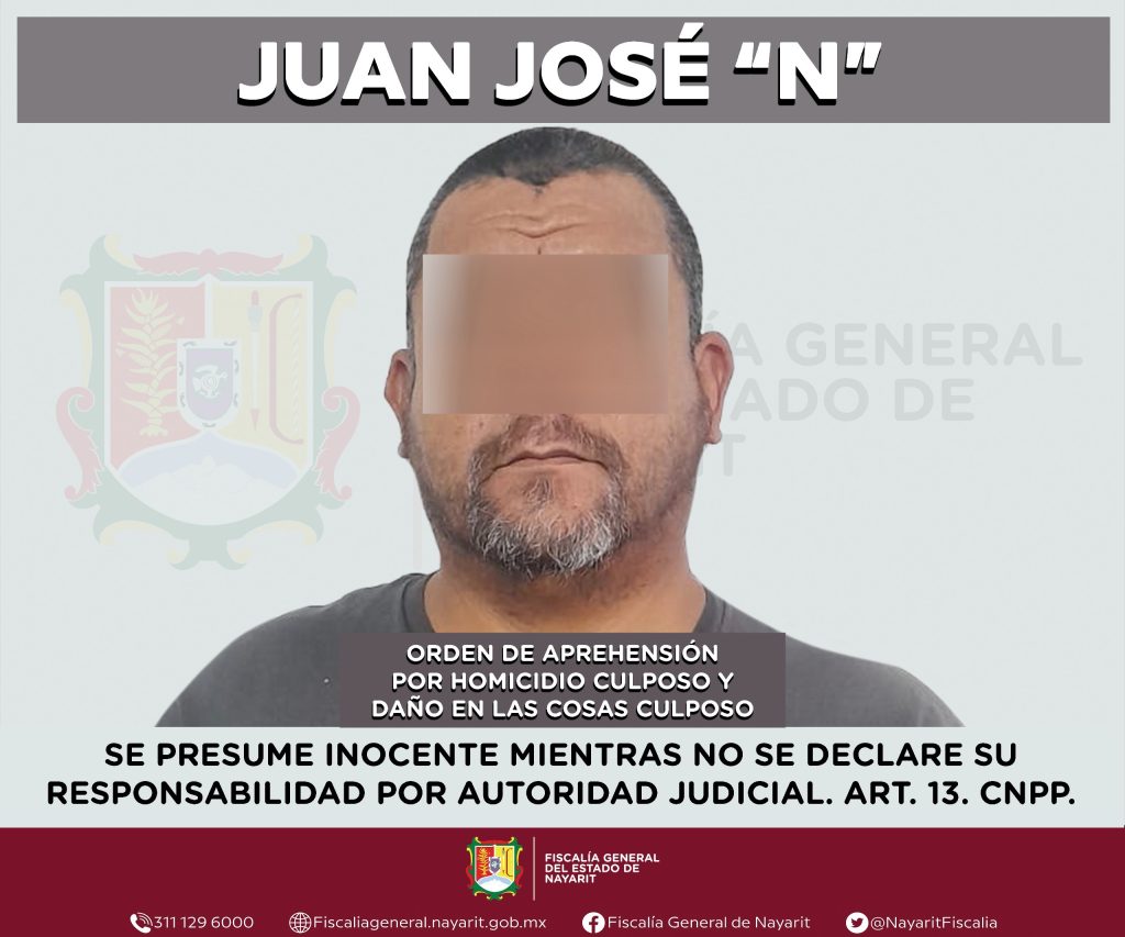 Elementos de la Agencia de Investigación Criminal de Nayarit ejecutaron una orden de aprehensión en la ciudad de Tepic contra Juan José “N”, por su presumible participación en hechos que la ley considera como delitos de homicidio culposo y daño en las cosas culposo, el primer delito en agravio de una persona de sexo masculino, en tanto el segundo es contra una mujer, siendo reservadas las identidades de las víctimas para salvaguardar su privacidad.