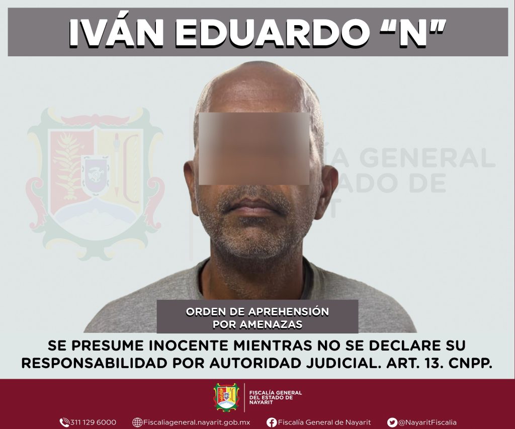 Elementos de la Agencia de Investigación Criminal de Nayarit ejecutaron una orden de aprehensión en la ciudad de Tepic contra Iván Eduardo “N”, por su presunta participación en hechos que la ley tipifica como delito de amenazas, cometido en agravio de una mujer de quien se reserva la identidad para salvaguardar su privacidad e integridad.