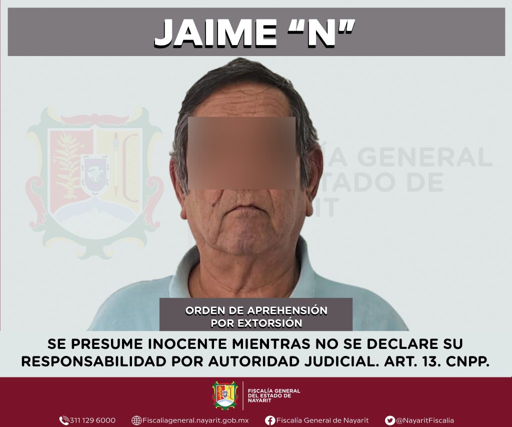 La Fiscalía General de Nayarit a través de la Agencia de Investigación Criminal ejecutó una orden de aprehensión en la ciudad de Tepic contra Jaime “N”, por su probable participación en hechos que para la ley configuran el delito de extorsión, ilícito cometido contra una persona de sexo femenino de la cual se reserva la identidad para salvaguardar su privacidad e integridad.