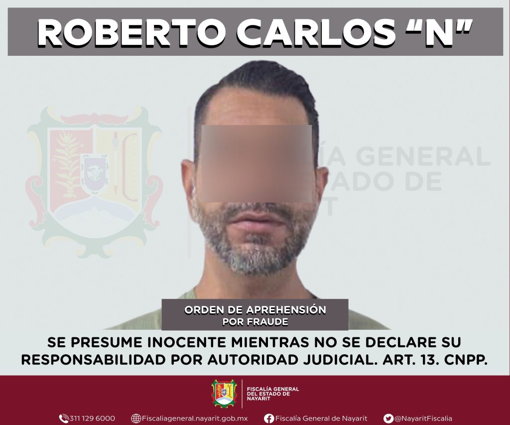 La Fiscalía General del Estado de Nayarit informa que, a través de la Agencia de Investigación Criminal, ejecutó una orden de aprehensión en la capital nayarita en contra de Roberto Carlos “N”, por su presunta participación en hechos que la ley tipifica como delito de fraude, cometido en perjuicio de una persona del sexo masculino, cuya identidad se reserva para proteger su privacidad e integridad.