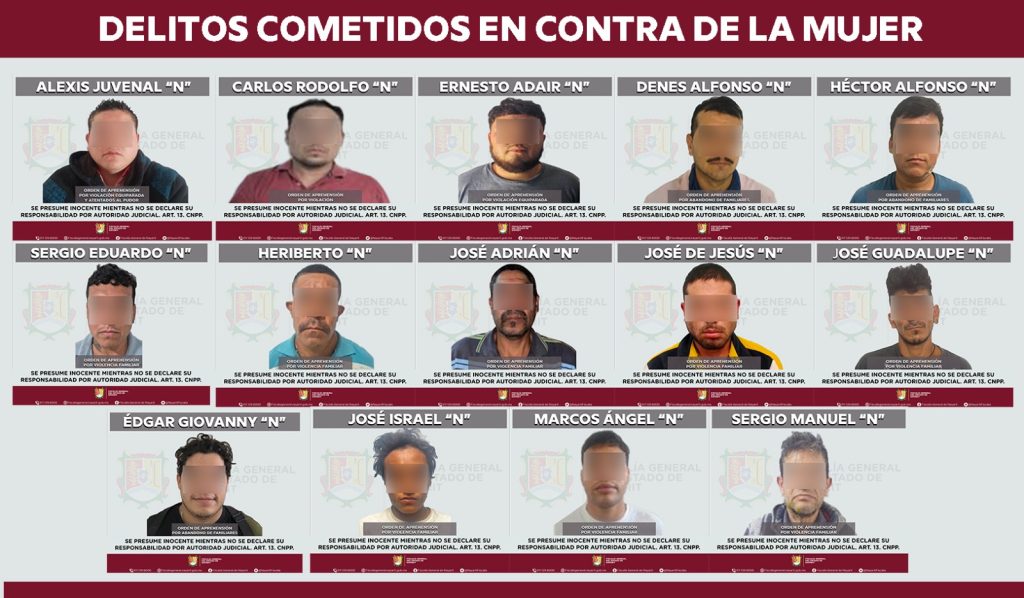 Tepic, Nayarit.– Como resultado de las acciones permanentes para combatir la delincuencia y garantizar el acceso a la justicia, la Fiscalía General del estado de Nayarit ejecutó el 19 de diciembre un total de 30 órdenes de aprehensión por diversos delitos en distintos municipios de la entidad.