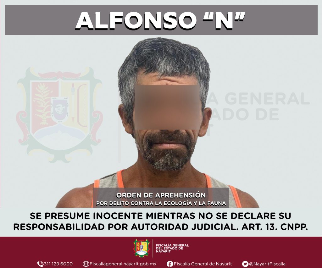 La Fiscalía General de Nayarit a través de la Agencia de Investigación Criminal ejecutó una orden de aprehensión contra Alfonso “N”, por su presunta participación en hechos que según apreciación de la ley encuadran el delito contra la ecología y la fauna, cometido en agravio de la sociedad.