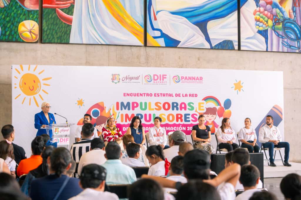 Tepic, Nayarit; 14 de octubre de 2025.– En un ambiente de alegría, participación y respeto, la presidenta del Sistema DIF Nayarit, doctora Beatriz Estrada Martínez, encabezó el Encuentro Estatal de la Red de Impulsoras e Impulsores de la Transformación 2025, con la participación de más de 100 niñas, niños y adolescentes provenientes de distintos municipios del estado.
