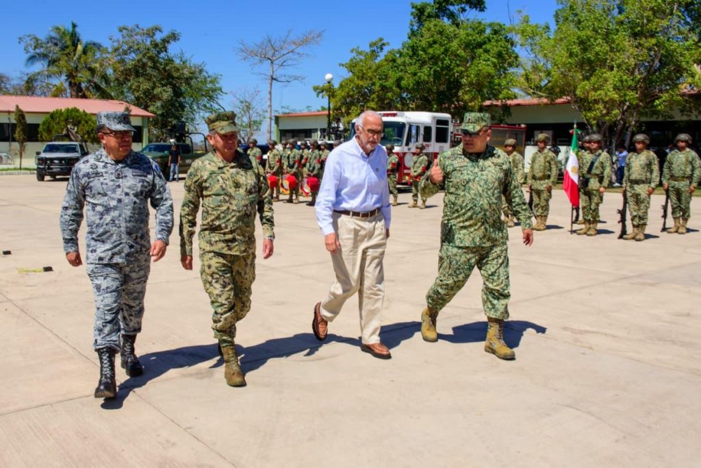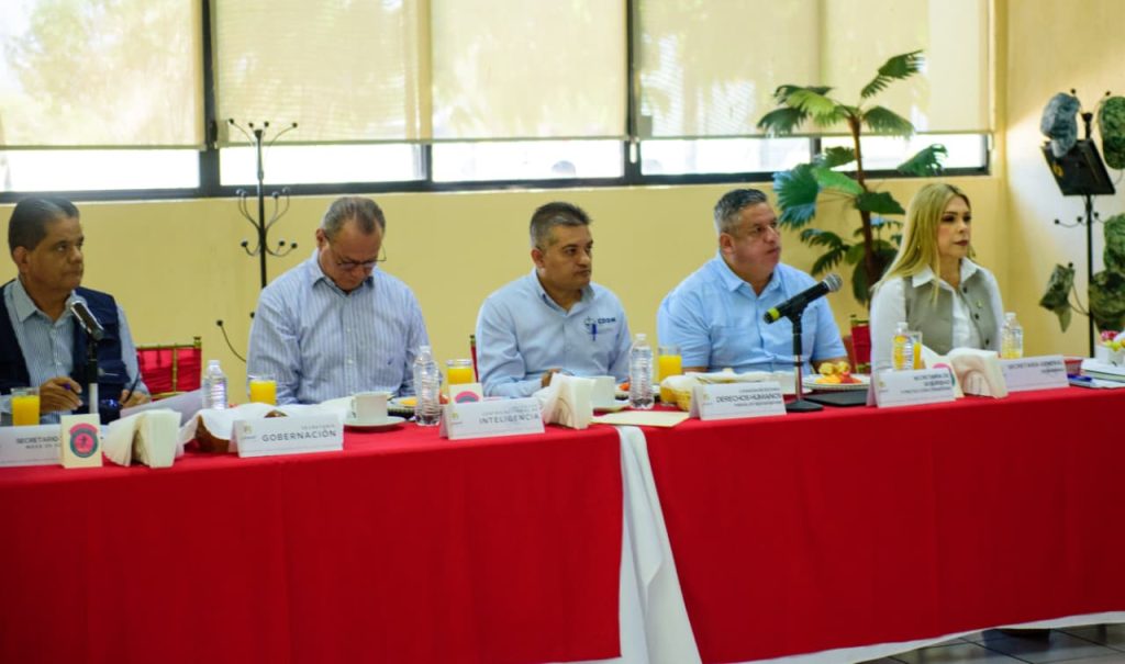En las instalaciones del 86 Batallón de Infantería, encabezó la Mesa Estatal de Construcción de la Paz y Seguridad, donde, junto con autoridades de los tres órdenes de gobierno, dio seguimiento a las estrategias en curso, los operativos y las zonas de atención prioritaria.