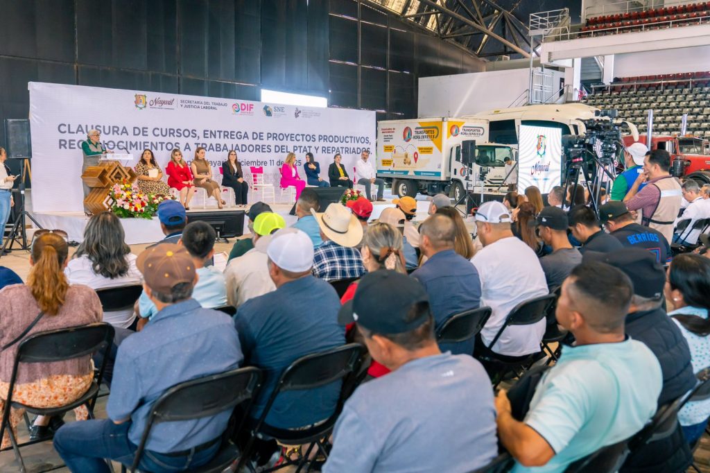 Para fortalecer la economía familiar en la entidad, la presidenta del Sistema DIF Nayarit, doctora Beatriz Estrada Martínez, encabezó la clausura de cursos de capacitación y la entrega de proyectos productivos, reconocimientos y apoyos dirigidos a beneficiarios del Programa de Trabajadores Agrícolas Temporales México–Canadá (PTAT) y del Subprograma Repatriados Trabajando en Nayarit. Durante este encuentro se reconoció el esfuerzo de quienes se preparan, emprenden y trabajan para construir un futuro más estable.