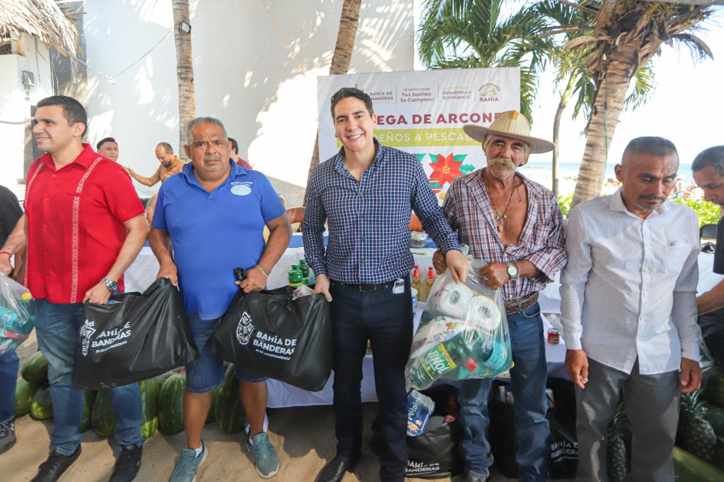 El presidente municipal de Bahía de Banderas, Héctor Santana, encabezó la entrega de 260 arcones navideños a pescadores y ostioneros del municipio, esto para fortalecer la economía familiar de este importante sector productivo.