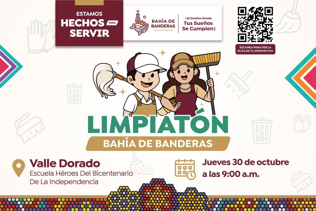 El Gobierno de Bahía de Banderas, encabezado por el presidente Héctor Santana, realizará una nueva jornada del “Limpiatón” este jueves 30 de octubre a las 9:00 a.m. en Valle Dorado, teniendo como punto de reunión la Escuela Héroes del Bicentenario de la Independencia.