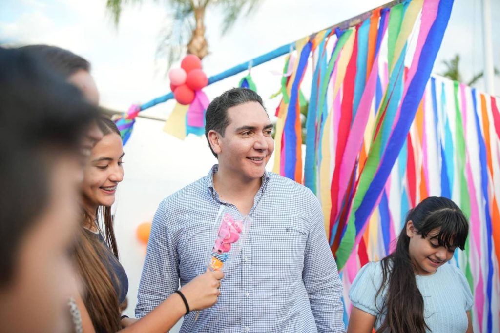 El presidente municipal Héctor Santana asistió acompañado de su esposa, la presidenta del DIF Bahía de Banderas, Margui Zúñiga, así como de sus hijas, con quienes compartió un día especial conviviendo con las familias del municipio.