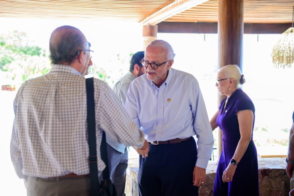 El gobernador del estado, Miguel Ángel Navarro Quintero, sostuvo un encuentro con integrantes de la Asociación de Empresarios de Punta de Mita, junto a su esposa, la doctora Beatriz Estrada Martínez, presidenta del Sistema DIF Nayarit, con el objetivo de revisar avances y fortalecer el trabajo conjunto en dicha zona turística de la entidad.