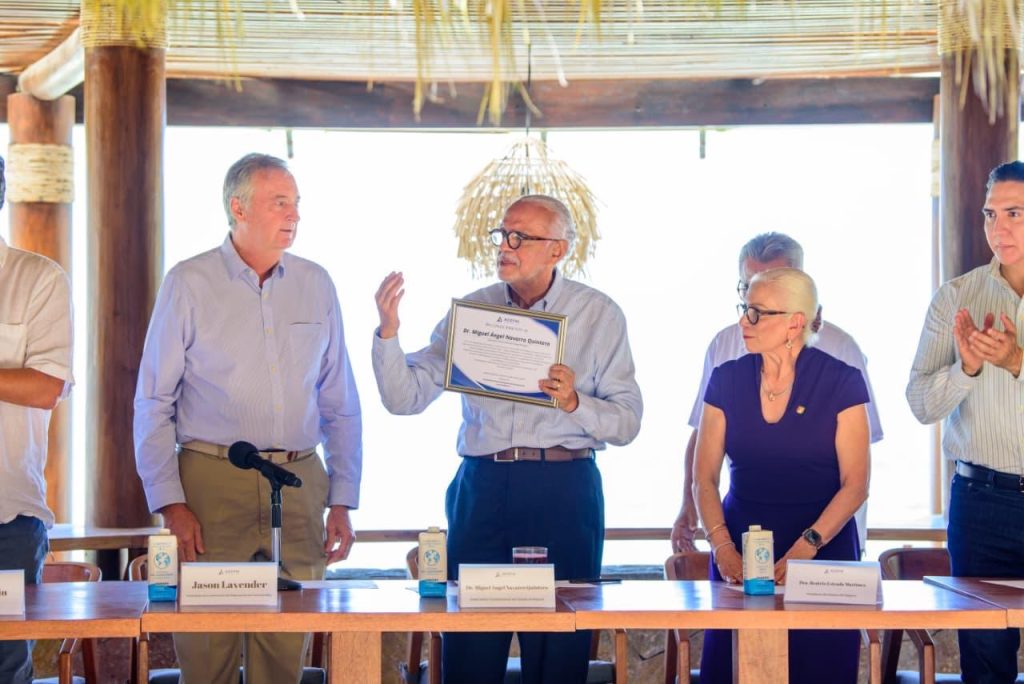 Por su parte, el vicepresidente de la Asociación de Empresarios de Punta de Mita, Adalberto Moreno, entregó un reconocimiento al gobernador Miguel Ángel Navarro Quintero, destacando su gestión y los avances en infraestructura, seguridad y crecimiento económico en la región.
