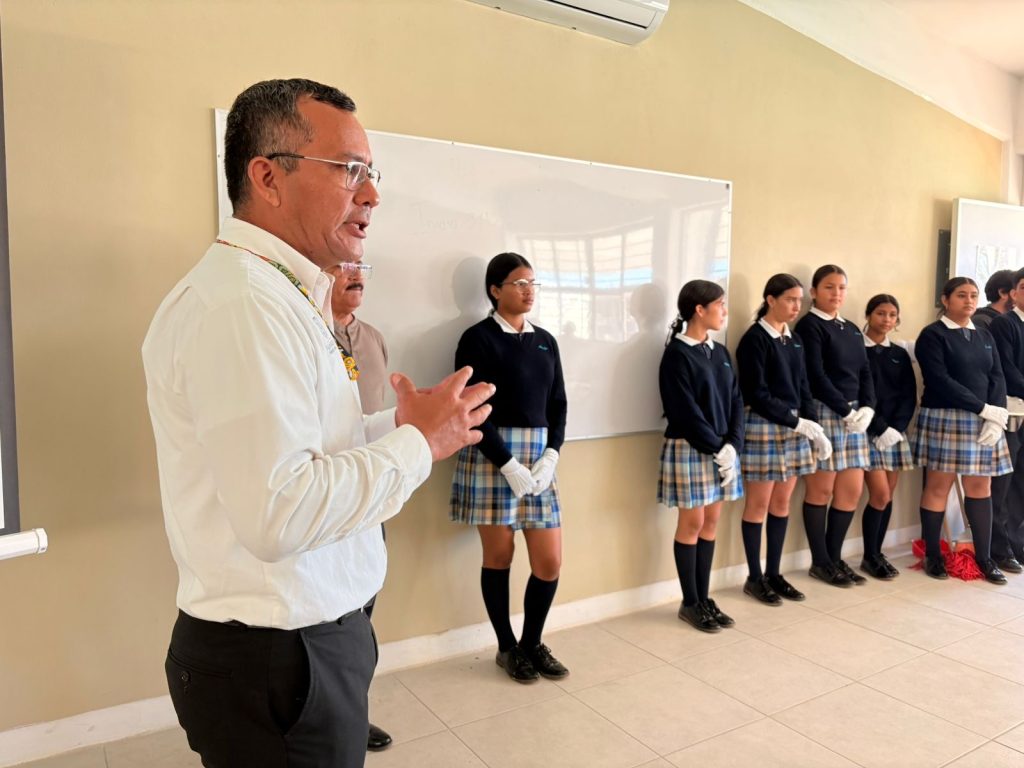 La Secretaría de Seguridad y Protección Ciudadana, a través del Instituto Estatal de Estudios Superiores en Seguridad, recibió la visita de alumnas y alumnos de la Telesecundaria Pedro Ortega Ulloa, del municipio de Santa María del Oro, con el propósito de fortalecer la cercanía entre la juventud y las instituciones de seguridad, así como fomentar los valores cívicos, el respeto y la disciplina.
